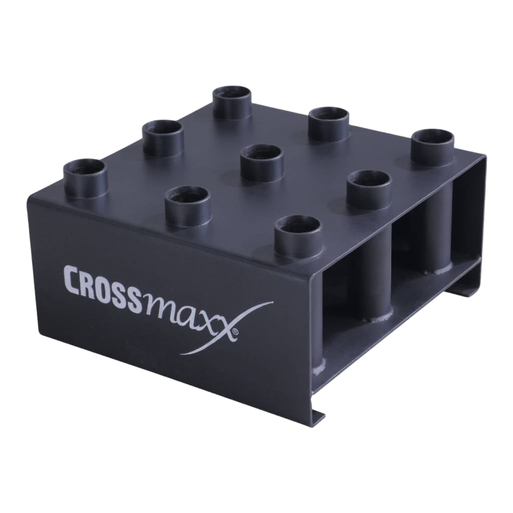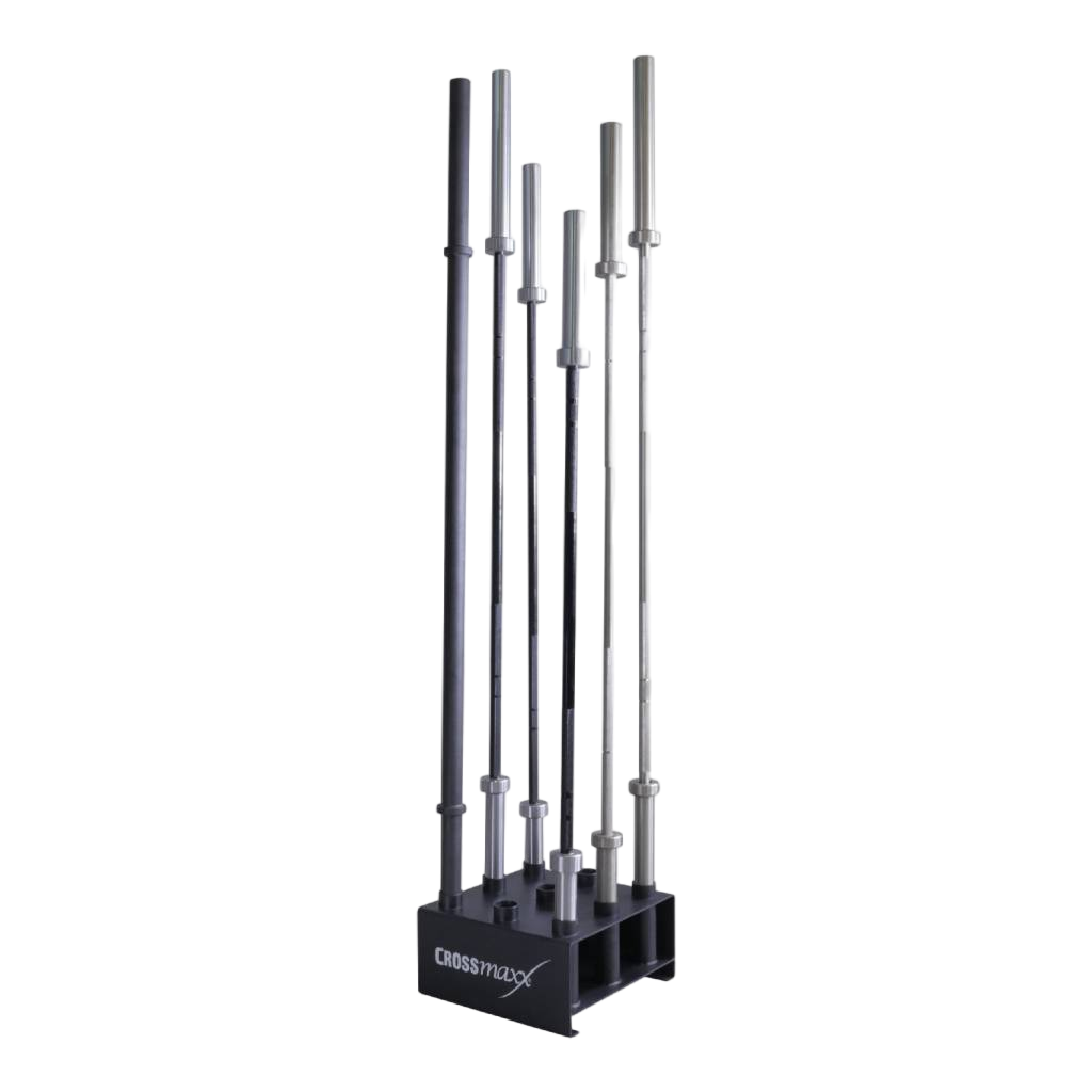 Le LMX1033 Crossmaxx® 9 bar holder est un support robuste et compact pouvant accueillir jusqu’à neuf barres d’un diamètre de 50 mm. Conçu en acier poudré noir mat et pesant 28 kg, il est idéal pour un usage professionnel intensif. Ce rangement permet de garder les barres bien organisées et améliore la sécurité de l’espace d’entraînement.