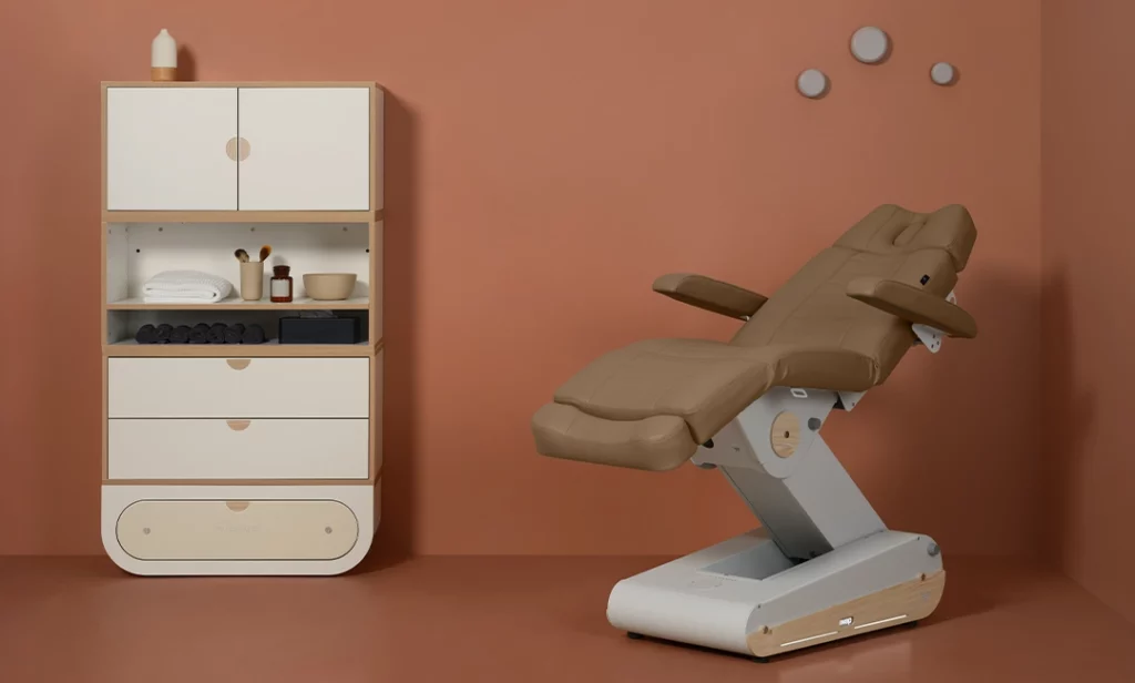 Fauteuil-table esthétique haut de gamme avec 4 moteurs et commande manuelle, conçu pour offrir une expérience de bien-être exclusive. Équipé d’accoudoirs rabattables et amovibles, repose-jambes extensible, trou facial avec coussin ergonomique et chauffage intégré. Son revêtement Soft Skin, associé à un matelas plus dense et confortable, enveloppe le patient dans une sensation de relaxation absolue. Idéal pour les soins qui exigent précision, élégance et confort maximal.